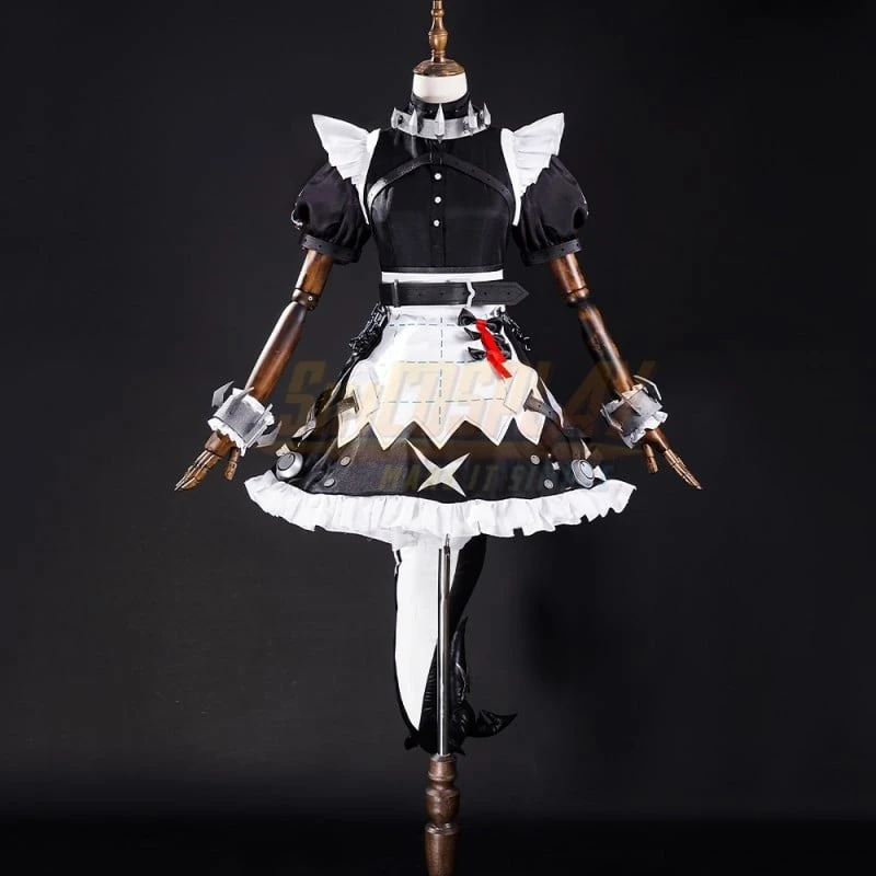 Full Set Includes: Dress, neckwear, apron, socks, headband, hair accessories, neck accessories, wristbands, bow, prop throwing knife, tail (extra option), shoes (extra option)
